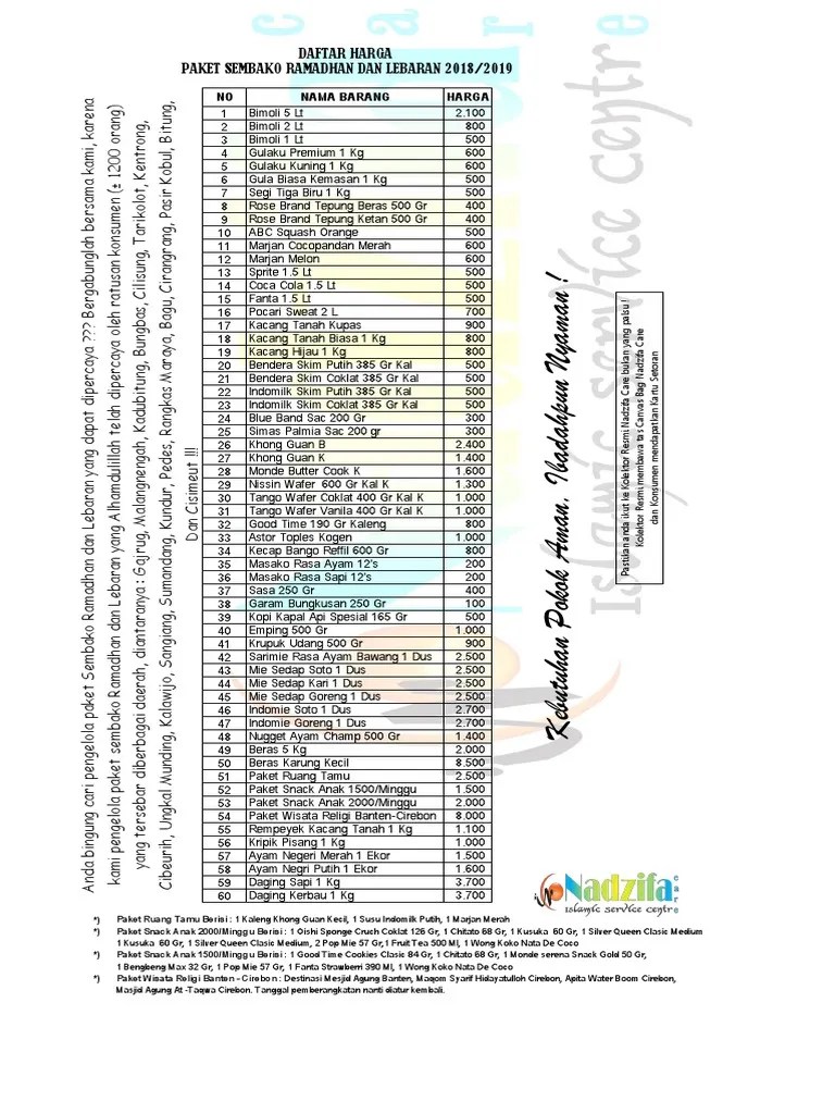 1500/hari paket lebaran i 2.500/hari paket lebaran ii 1.500/hari paket kue lebaran 25.000/bulan fanta sprite coca cola yakult buavita nutrisari bendera cair fruit tea silver queen tango sozzis citato taro koko crunch kacang garuda pop mie inaco tim tam bengbeng permen fox choki. Berikut ini adalah contoh desain brosur ekspedisi yang bisa menambah inspirasi anda. Buat parcel sembako sederhana sendiri di rumah pusat parcel indonesia. Biasanya brosur memuat isi berupa tulisan dan gambar yang dikemas dengan bentuk desain menarik, sehingga berhasil membuat calon konsumen semakin berminat dengan produk atau jasa yang ditawarkan. Jumlah penerima paket berjumlah 100 orang ( 80 anak yatim 20 fakir miskin ) nominal. Kemudian kami ingin informasi bahwa untuk kebutuhan jasa desain dan cetak / printing aneka brosur atau flyer sesuai kebutuhan anda, ayuprint percetakan karawang siap melayani anda dengan harga dan kualitas terbaik. Super express, express dan cepat. Memilih paket yang ingin dipesan atau meminta penawaran paket lebaran custom bila paket yang tersedia belum memenuhi kriteria yang dibutuhkan perusahaan. paket muslim anak edisi lebaran ada berbagai pilihan paket bisnis yang kami sediakan untuk mendukung usaha grosir baju murah anda. Seluruh foto pada background santunan anak yatim dan website ini. Bagaimana tidak, disaat banyak para tetangga, kolega dan handai taulan berkunjung ke rumah, sebagai salah satu tradisi unik dan tanda keramah tamahan. Momen lebaraan di manfaatkan oleh sebagian perantau untuk melakukan aktivitas pulang kampung / mudik. Parcel sembako lebaran murah berkualitas 021 8995 2483 paket.